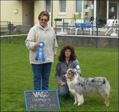 Black Velvets Harley Davidson x Backdrafts Raging Inferno geb. 30.07.02 Besitzer: Karin Wedig, Frankreich, Ws Red Diamonds Aussies Erfolge: Trier April 2006 Samstag 29.04.2006 2x Winners Bitch gelaufen und somit ASCA Champion!!! Sonntag den 30.04.2006 Best Of Breed Montag den 01.05.2006 Best Opposite Sex Freiburg Juli 2004 24.07.04 Novice 1. Platz Winners Bitch 25.07.04 Novice 2. Platz | |||||||||||||||||||||||||||||||||||||||||||||||||||||||||||||||||||||||||||||||||||||||||||||||||||||