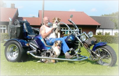 Blohm & Inka Schumacher (Vater und Tochter). Unser Zuhause ist im wunderschönen Nordkehdinger Land in Freiburg an der Elbe. Zu unserer Tierfamilie zählen zur Zeit neun Australian Shepherds, drei Hannoveraner und zwei Mini Shettys. Durch unsere frühere Schäferei sind wir an den Australian Shepherd gekommen. Vor mittlerweile 18 Jahren haben wir unsere erste Aussie Hündin "Mary" bekommen, die uns leider im Januar 2005 verlassen hat. Die Hunde genießen bei uns viel Auslauf auf unserem 5000m² großen Grundstück in Landesbrück. Der Auslauf wird durch einige Spaziergänge im Aussendeich erweitert. Bei schönem Wetter wird auch in der Elbe gebadet. ( Was unsere Hunde bei jedem Wetter tun würden ) Unsere Aussies haben einen regen Kontakt mit Mensch und Pferd, da sich die Besamungsstation des Landgestüts Celle (Hannoveraner) auf unserem Grundstück befindet. Wir wünschen Ihnen viel Spaß auf unserer Homepage! |